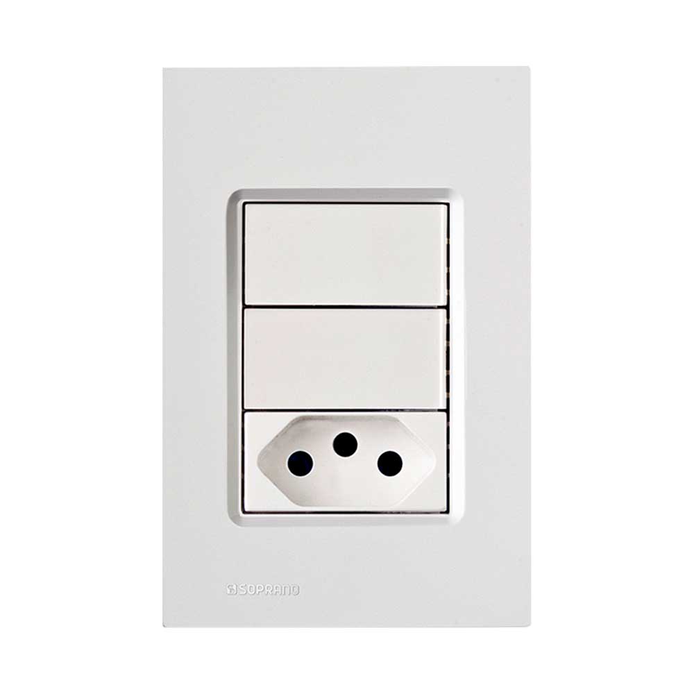 Conjunto Montado 4X2 Tomada 2P+T 10A 250V Delta Mondo Soprano Branco - 2 Interruptores e Tomada