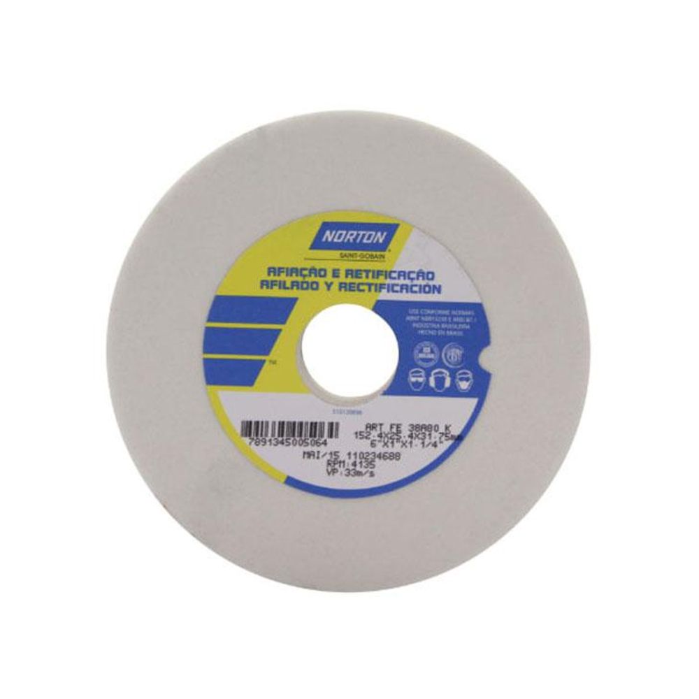 O Rebolo Branco Norton é indicado para afiação ou retificação de ferramentas de aço de alta dureza, de maneira rápida, com corte frio, e excelente manutenção do perfil. Disponível nos formatos prato, copo reto, segmentos e copo cônico.