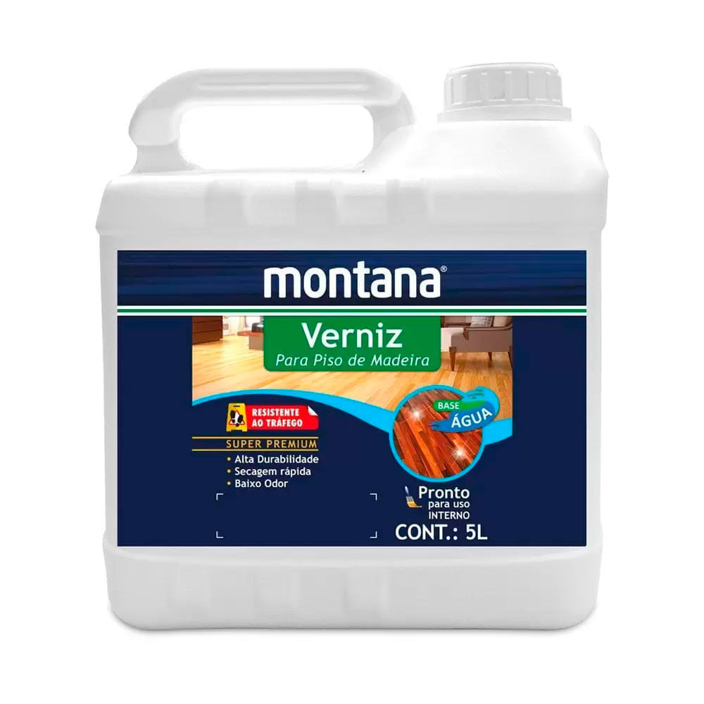 Verniz Brilho Base Água para Piso Madeira Montana - 5L
